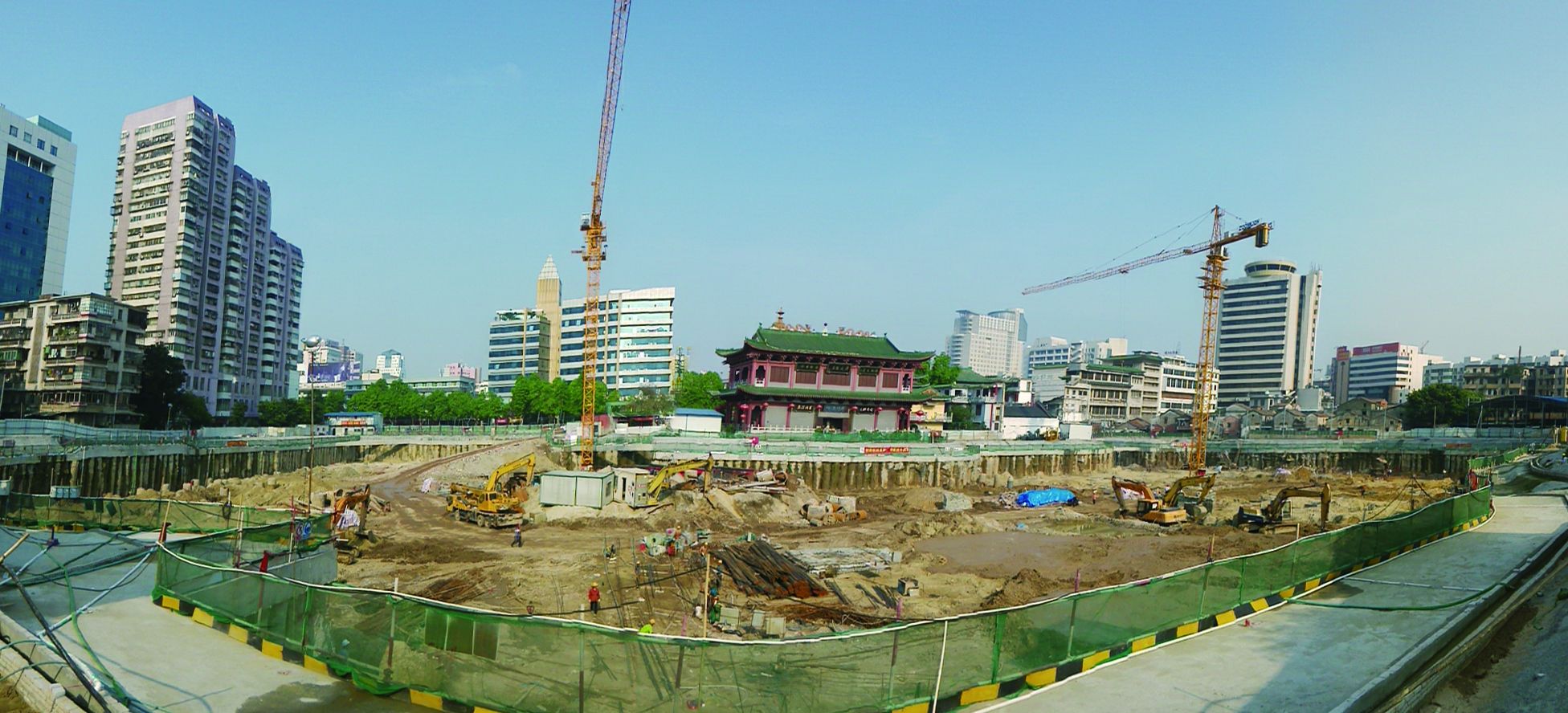 仁壽寺基坑支護(hù)工程,佛山重點(diǎn)工程之一,地下室面積14000平方米,基坑最大開挖深度10.6米。該工程采用雙排樁支護(hù)設(shè)計(jì),三軸攪拌止水樁609套、支護(hù)樁654條,出土超13萬(wàn)立方米。